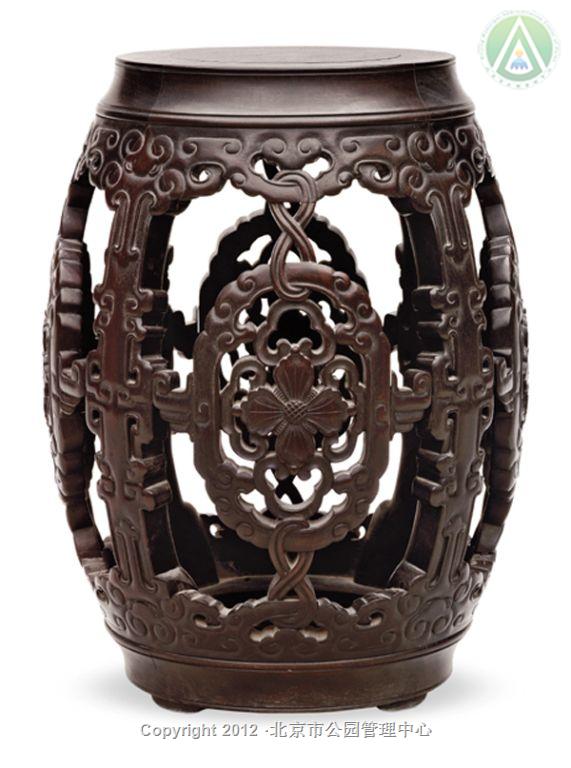紫檀透雕花卉纹绣墩清中期绣墩