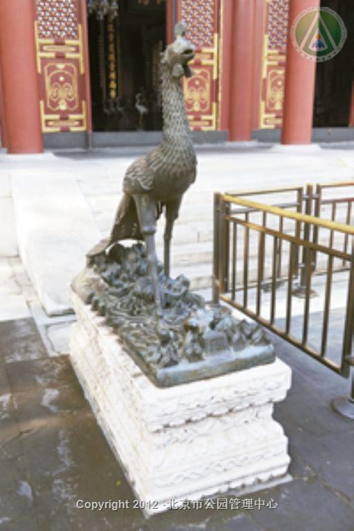 位于仁寿殿月台上南北两侧,常与‘铜龙’成对出观,作为装点庭院的陈设,可以燃香,并且有"龙凤呈祥"的寓意。
