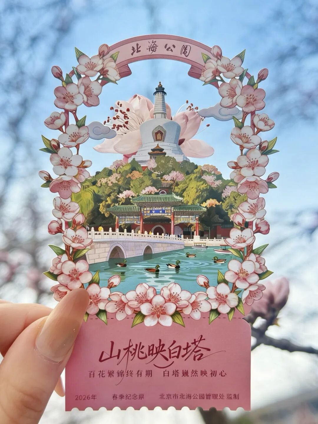 北海“山桃映白塔”纪念票·春季