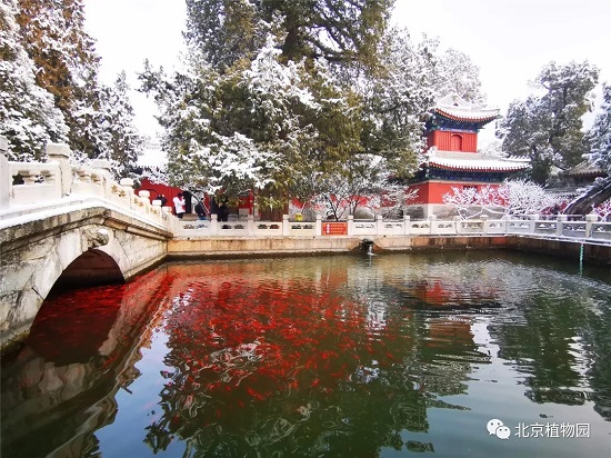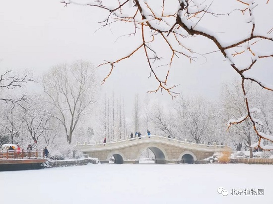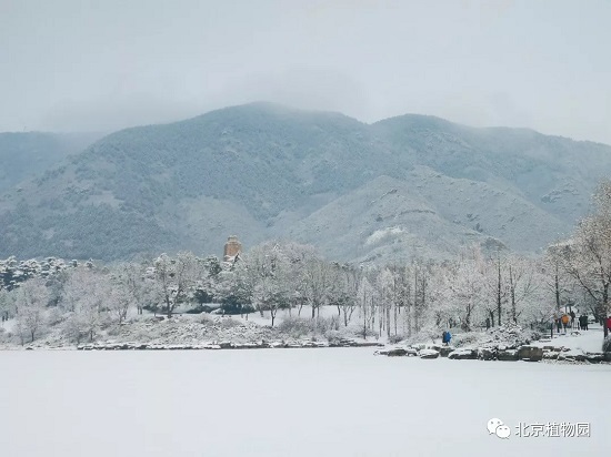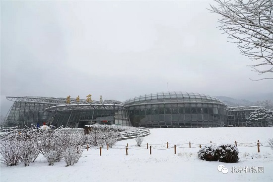 伴随着小寒节气的到来,2020年的第一场雪悄然而至,经过一夜洗礼,整个京城银装素裹,分外妖娆,处处彰显着诗情画意。在北京植物园里,皑皑白雪覆盖了整个湖面,远处层峦叠嶂犹如银龙盘桓,显现出“西山晴雪”的优美盛景。山脚下,热带展览温室仿似一颗明珠,在晶莹雪色的映衬下更显璀璨。