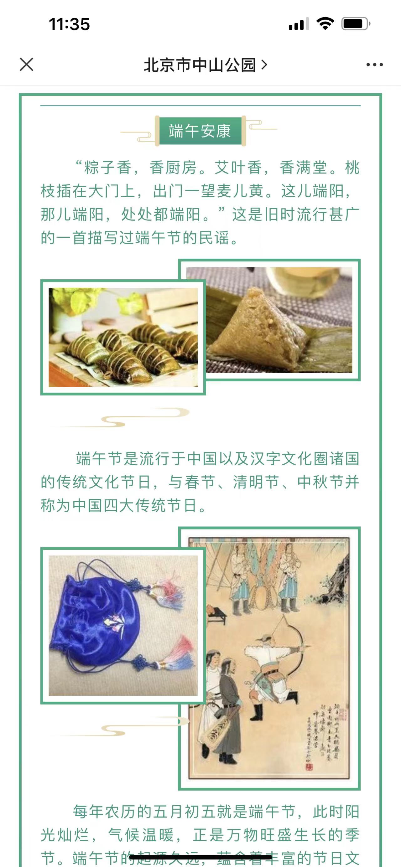 1.开展端午民俗文化宣传,以“品味端午诗词民俗”为主题发布微信公众号,介绍端午传统民俗文化,赏析端午节相关诗词,弘扬中华传统文化。2.丰富开展线上科普宣传,开展“绿色端午——植物压花制作”线上科普宣传活动,以“定格时光,留住开花之美”为主题结合端午节日文化习俗,介绍初夏植物,采撷花叶,裁剪组合制作手工艺术品,感受端午丰富文化内涵。