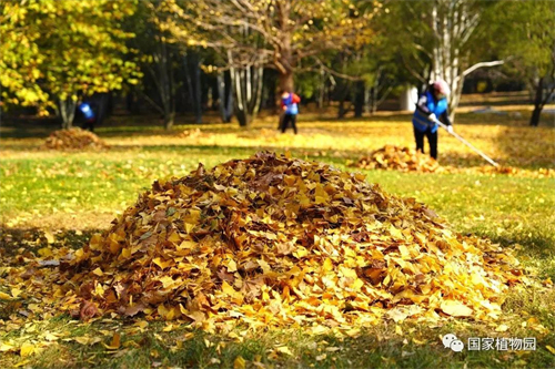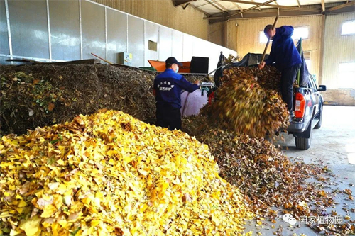 金秋时节炫美的彩叶,随着冷空气的降临纷纷凋零。由于北京地区湿度低,很多树叶落地后变得干燥、易燃,不仅不美观,更是给消防安全带来很大的隐患。为解决这一问题,国家植物园(北园)每年从初冬时节开始对落叶进行集中收集处理。落叶期内,园内每天平均收集枯枝落叶约90立方米。如此多的落叶如何处理呢?国家植物园(北园)有一个专门的部门可以将这些落叶变废为宝。这个部门就是国家植物园(北园)绿化垃圾处理厂。这座处理厂是北京市公园管理中心绿色垃圾无害化处理运行的示范项目。以消纳公园产生的绿化垃级(如树枝、树叶、草屑等)为目的。